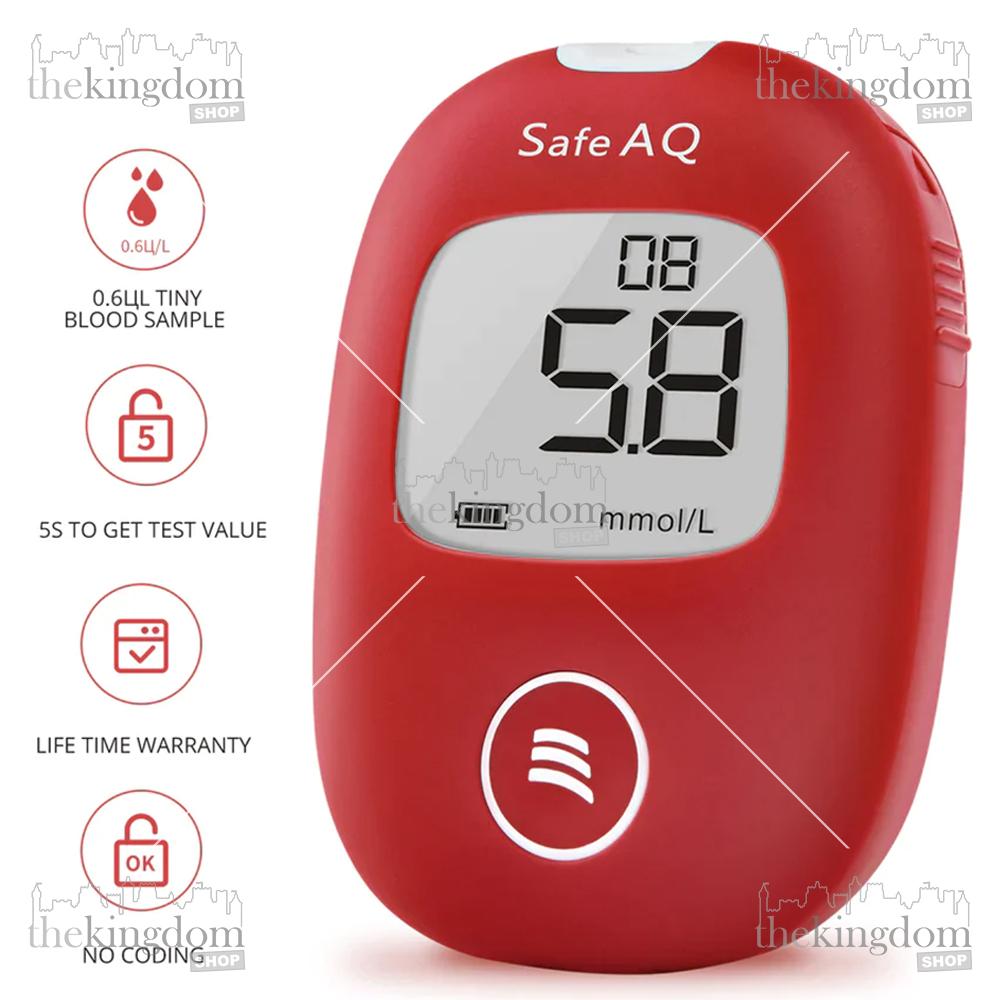 The Sinocare Safe Aq Smart is a blood glucose tester with fast results in just 5 seconds. It has a memory capacity of up to 200 test results and uses a FAD-GDH system that is resistant to oxygen molecules in the blood.