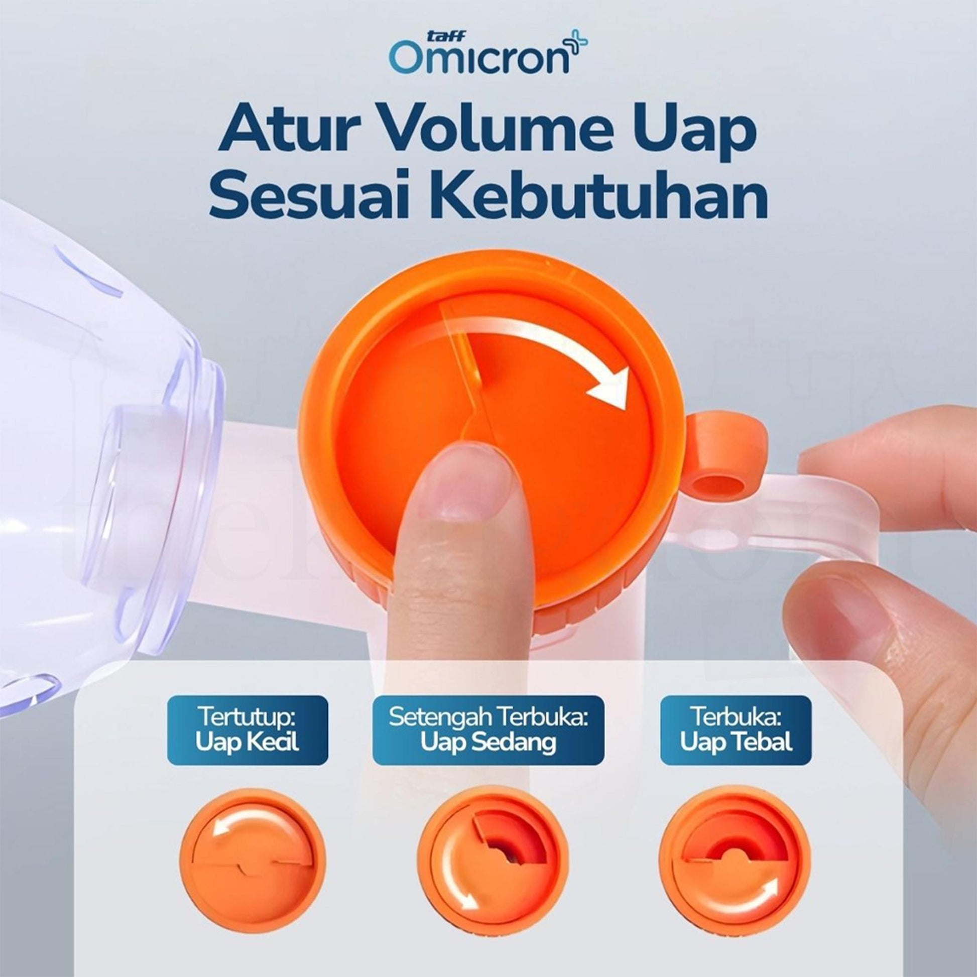 Menghirup uap lebih nyaman berkat katup pengatur untuk menyesuaikan volume uap yang dihasilkan. Cukup putar katup sesuai kebutuhan dan sebelum menggunakan masker nebulizer.