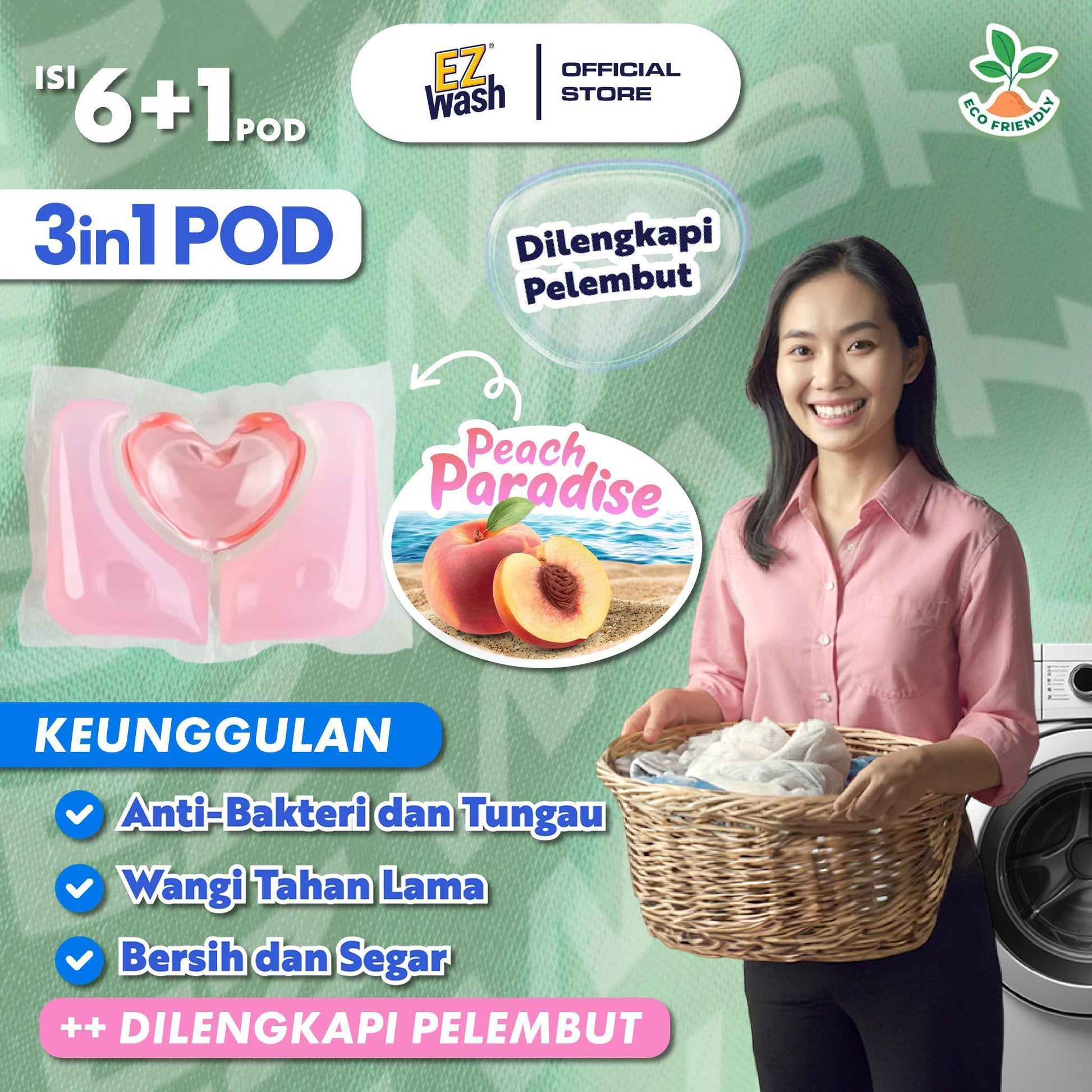 EZWash Laundry Pod 3in1 – Peach Paradise: pilihan tepat untuk Anda yang menyukai keharuman lembut, manis, dan segar setiap kali mencuci.