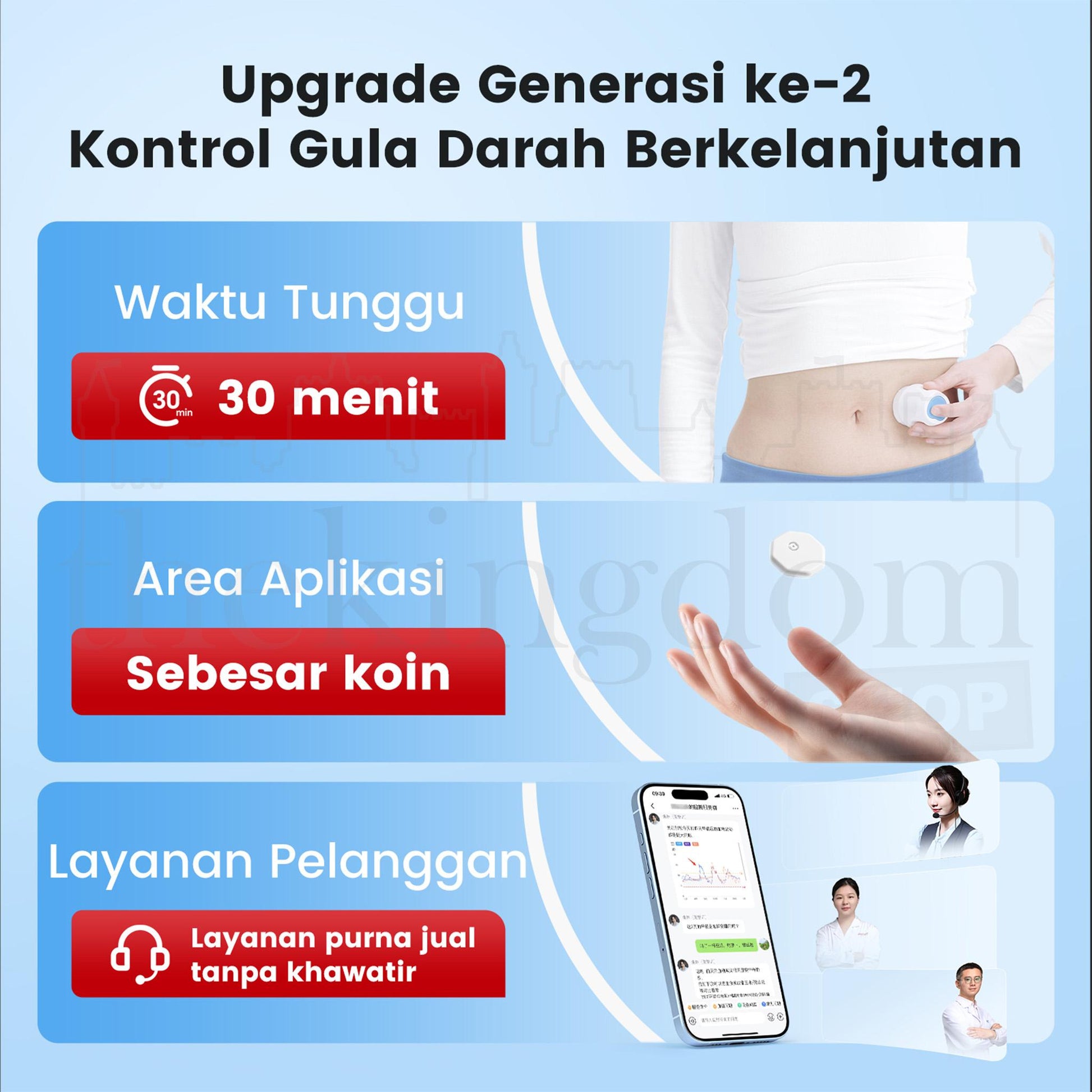 Teknologi Continuous Glucose Monitoring (CGM) memungkinkan pemantauan tanpa tusukan jari. Lebih nyaman, minim rasa sakit, dan memberikan gambaran menyeluruh mengenai pola gula darah sepanjang hari.