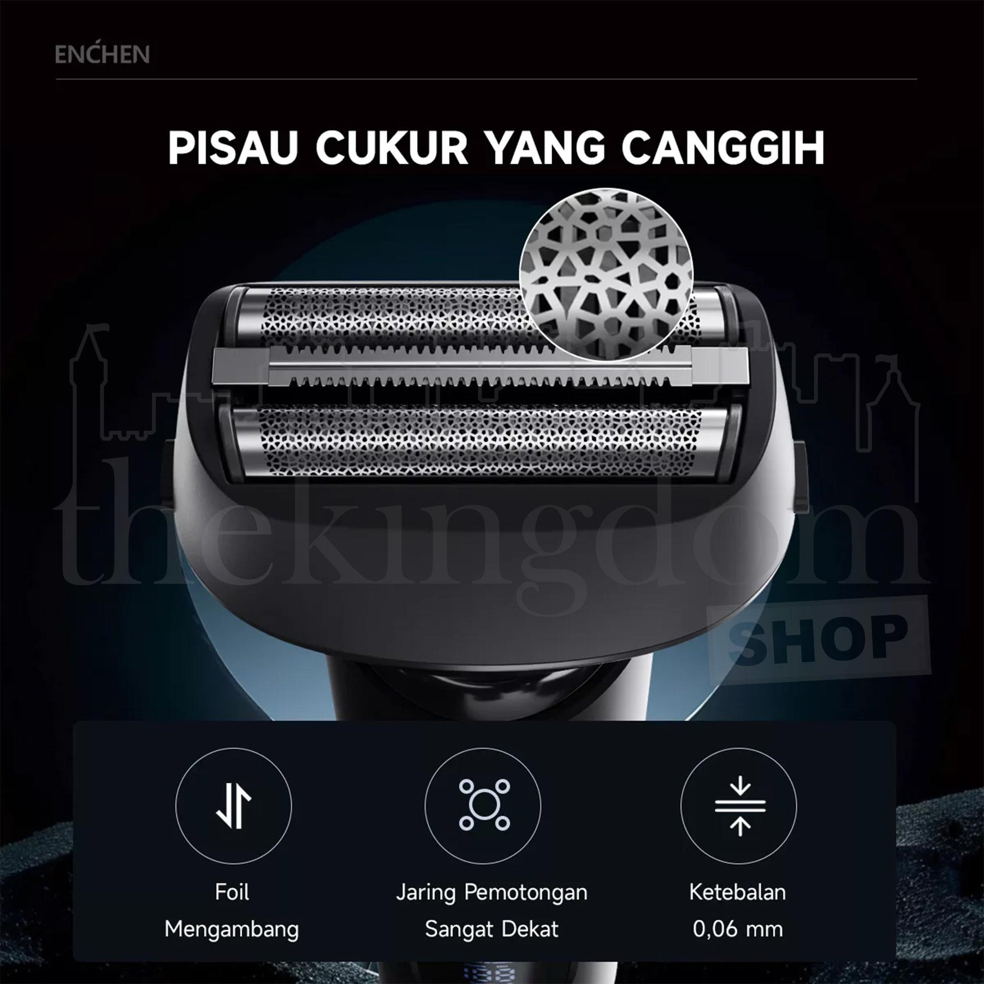 Kepala pisau bergerak fleksibel mengikuti kontur wajah. Ketebalan pisau hanya 0.06 mm untuk hasil pencukuran yang sangat rapat dan merata.