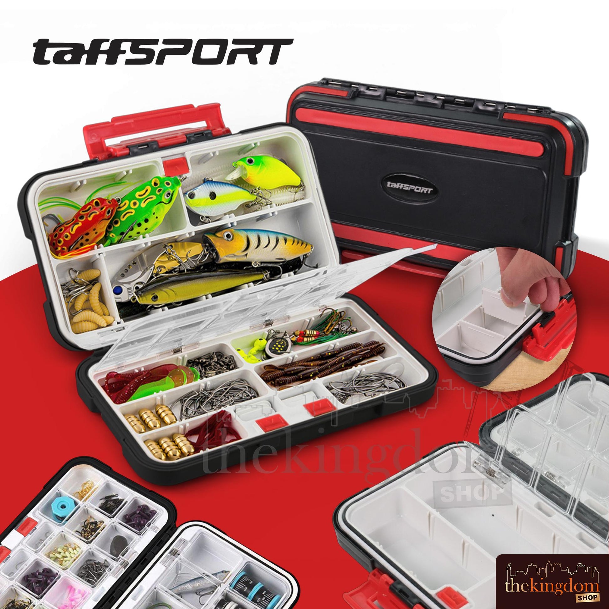 Peralatan memancing yang berantakan memang menyebalkan. Belum lagi kail dan umpan yang sulit ditemukan saat dibutuhkan. Untuk mengatasinya, Anda dapat menggunakan kotak pancing dari TaffSPORT ini. Kotak ini memiliki beberapa partisi untuk memisahkan alat pancing. Partisinya juga dapat Anda lepas untuk menghasilkan ruang sesuai kebutuhan. Lengkap dengan sistem penguncian agar alat pancing Anda tetap aman saat dibawa.